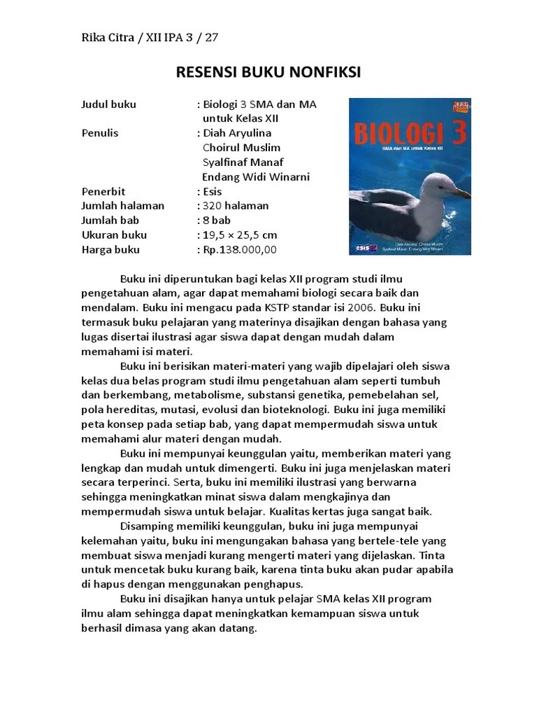 Contoh resensi buku non fiksi deweezz.com. Teknik seni bermain gitar penulis : Informasi mengenai buku tersebut seperti judul dan nama penulis. Pramoedya ananta toer · 3. Yang berarti cerita yang dibangun oleh penulis bersifat fiktif.